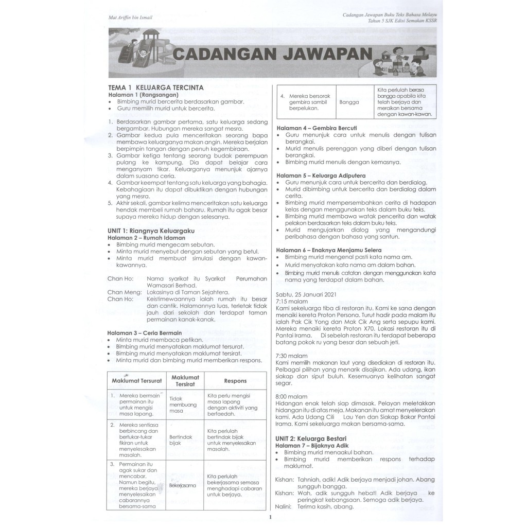 Cadangan Dan Panduan Jawapan Buku Teks Bm Sjk Tahun 5 Sjk Semakan Kssr Shopee Malaysia